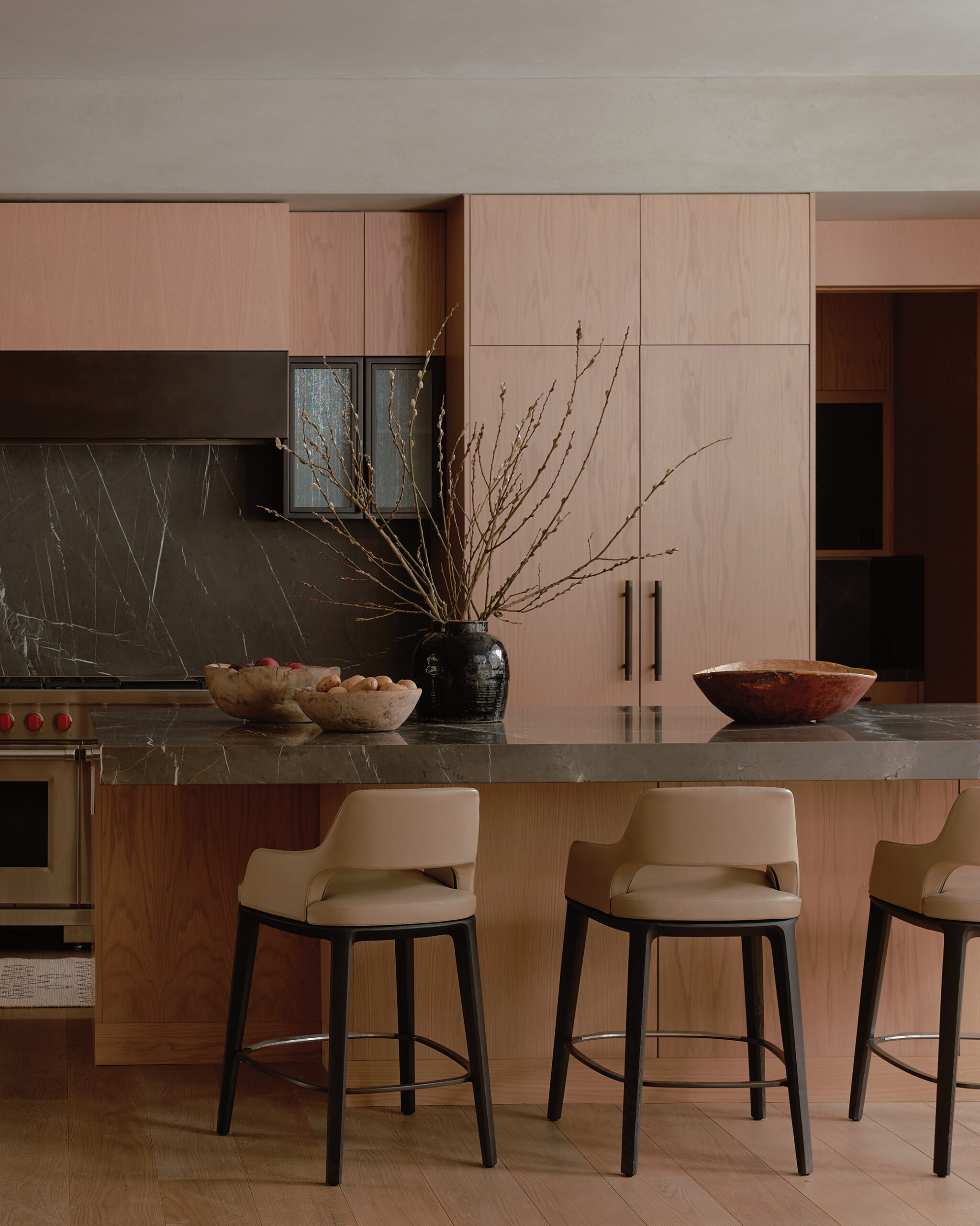 Susan says the home’s sense of calm is born from a willingness to edit. “The balance came from choosing materials and forms that feel honest. Wood with texture, stone with movement, fabrics with depth,” she explains. “Layering those with more refined detailing allowed the home to live in both worlds. It is sophisticated but still unmistakably connected to the Rockies.”