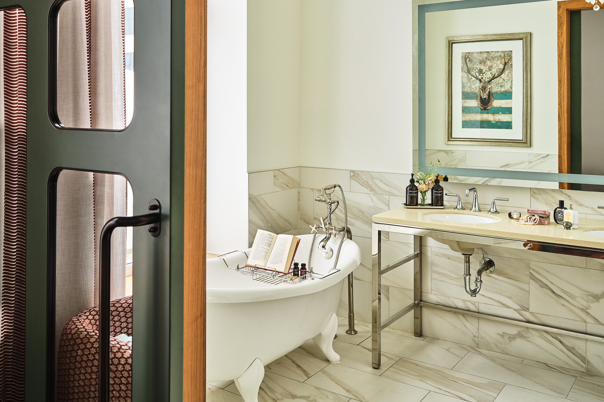 As easy as it would be to forever lounge in the luxury of the room, date night is best rounded out by taking advantage of The Crawford’s prime location. Doing so doesn’t take much more than a few minutes of walking. Dining options abound in LoDo, from casual and elevated spots in the Great Hall to the surrounding restaurants in McGregor Square and the Dairy Block. We strolled from our room to the third floor mezzanine of Union Station for a nightcap at the elegant and intimate Cooper Lounge before retiring to our room for a soak in the freestanding tub and a final collapse into the plush king-size bed with a vibrant green scalloped headboard. Modern train travel may not match the grandeur of the Gilded Age, but The Crawford certainly does.