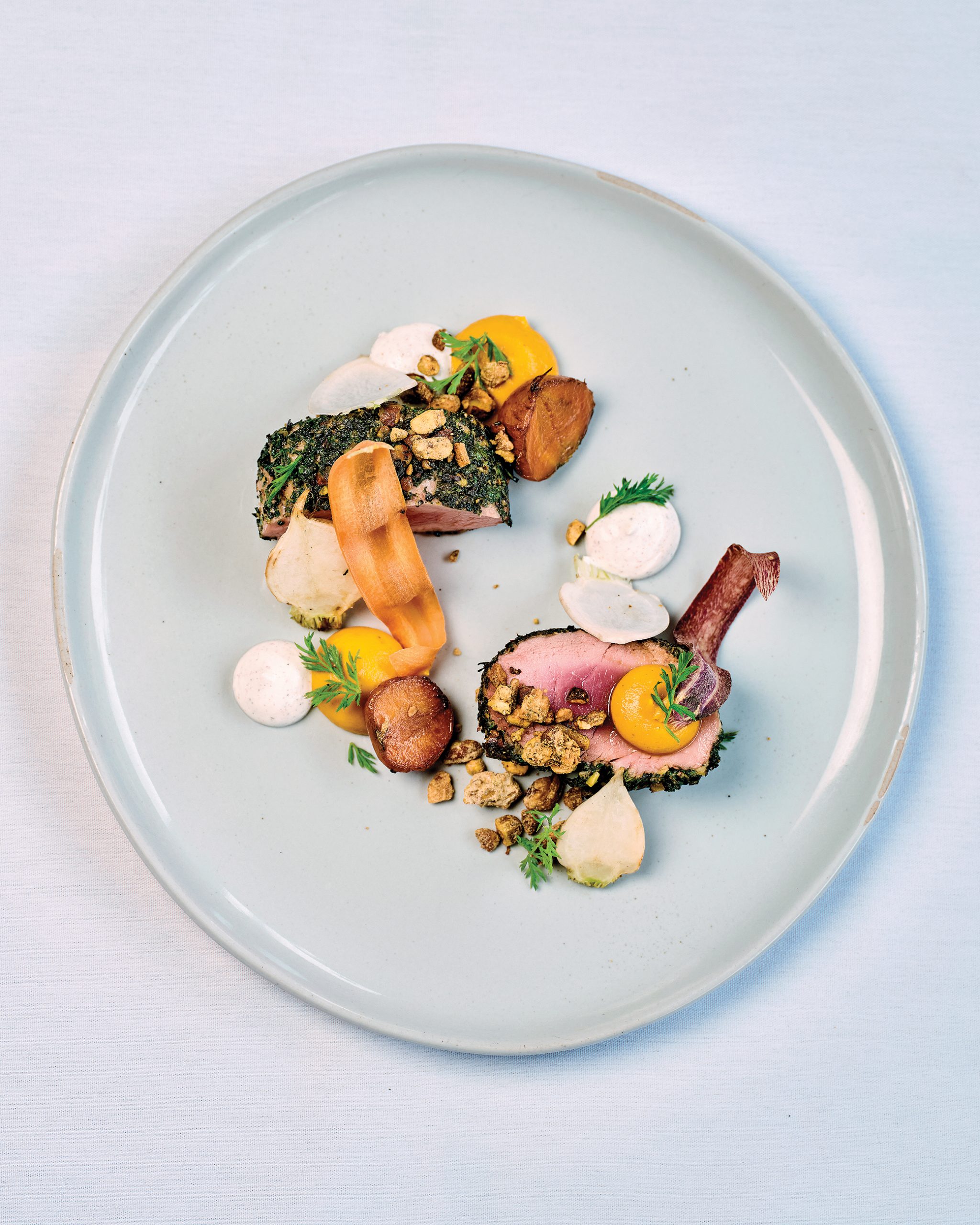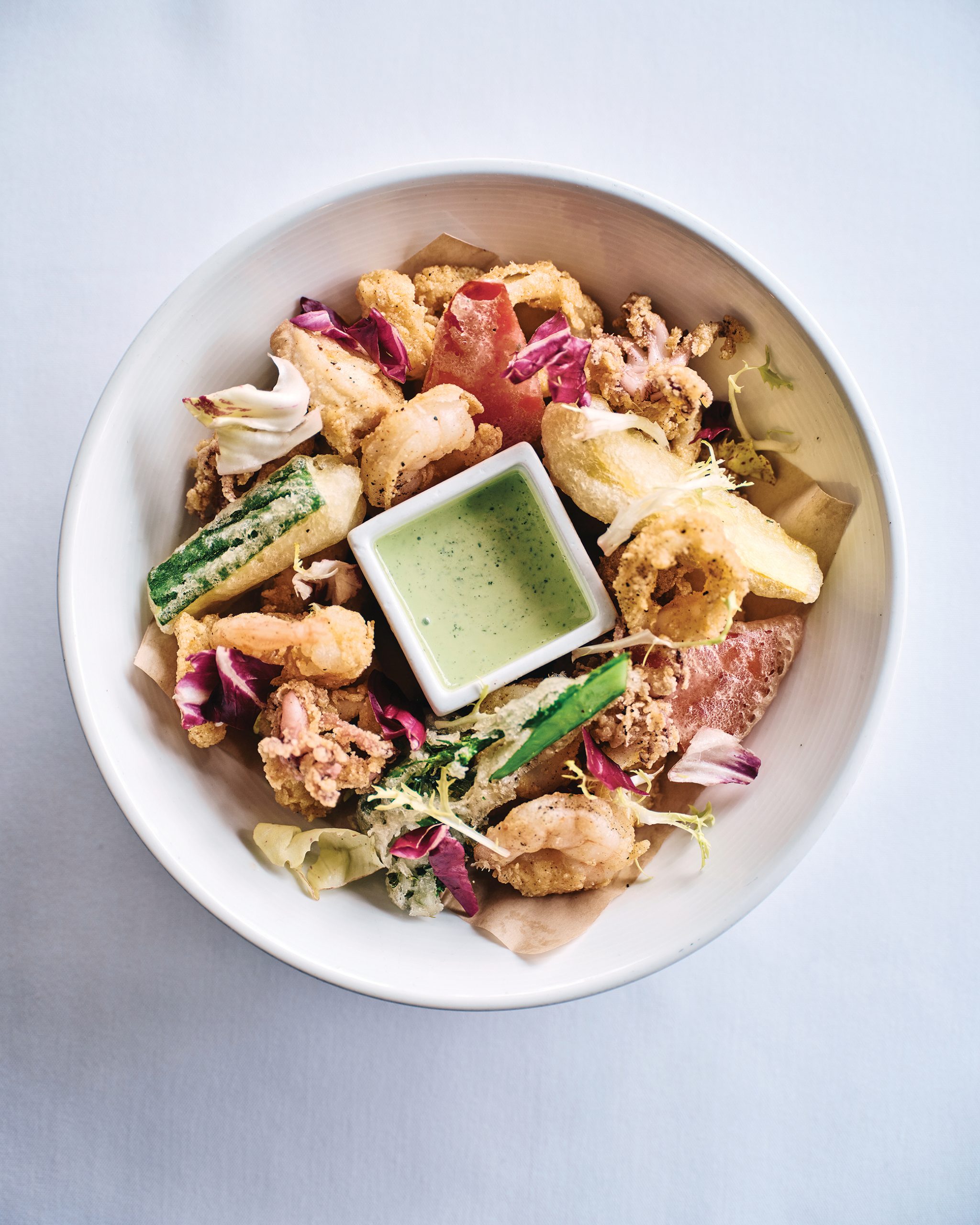 The fritto misto transports you to coastal Italy. Don’t be thrown off by the horseradish; it complements the dish perfectly, adding a zesty kick that lightens up the fried calamari, rock shrimp, seasonal fish, and vegetables. In the crudo di ricciola, hearty pieces of amber jack are brightened by truffle ponzu and pickled jicama, while fried quinoa adds a satisfying crunch. The agnolotti con lavanda is carefully folded and filled with veal, lavender brown butter, and Parmigiano-Reggiano.