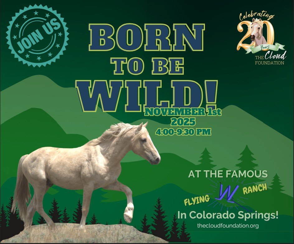Join The Cloud Foundation for Born to Be Wild 2025 — an unforgettable evening celebrating 30 years of the legendary wild stallion Cloud’s legacy, 20 years of wild horse and burro advocacy, and the enduring magic of America’s wild equines.