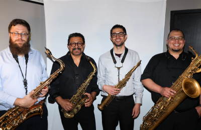 A four-piece offshoot of the larger Sax Syndicate. This jazz group is composed of Soprano, Alto, Tenor, and Baritone Saxophones. Their intricate weaving harmonies are reminiscent of a barbershop quartet.