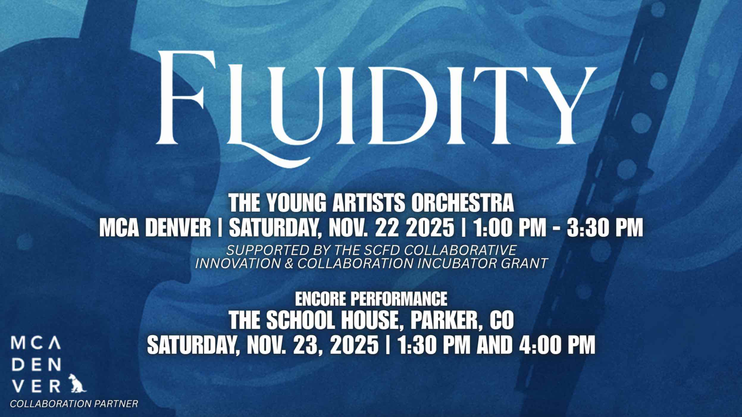 Join DYAO and MCA Denver for a special collaboration, Fluidity! This concert explores movement between space, time, and artistic mediums. Through this performance, audiences will construct their own narrative in an immersive experience among MCA’s current exhibitions featuring artists Roni Horn and Deborah Jack. The art will inspire the music performed by DYAO in non-traditional presentations that evolve over time and throughout the space.