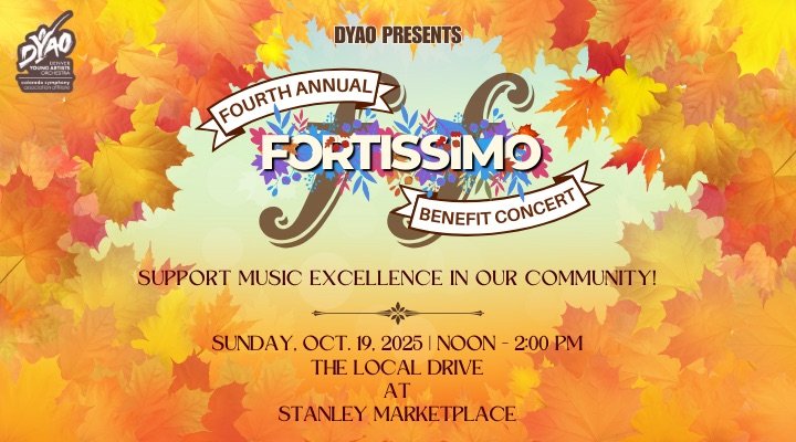 Join us for the 4th Annual Fortissimo Fall Festival on October 19 at The Local Drive in Stanley Marketplace! Enjoy captivating solo and small group performances by talented DYAO members and local musicians. Dive into the festive spirit with a pumpkin painting contest, carnival games, delicious food, and exciting prizes to be won. This event is more than just fun—it’s a wonderful opportunity to support scholarships for young musicians. Bring your friends and family for a day of music, creativity, and community!