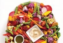 This free-form crudités platter is a beautiful way to display this month’s bounty.