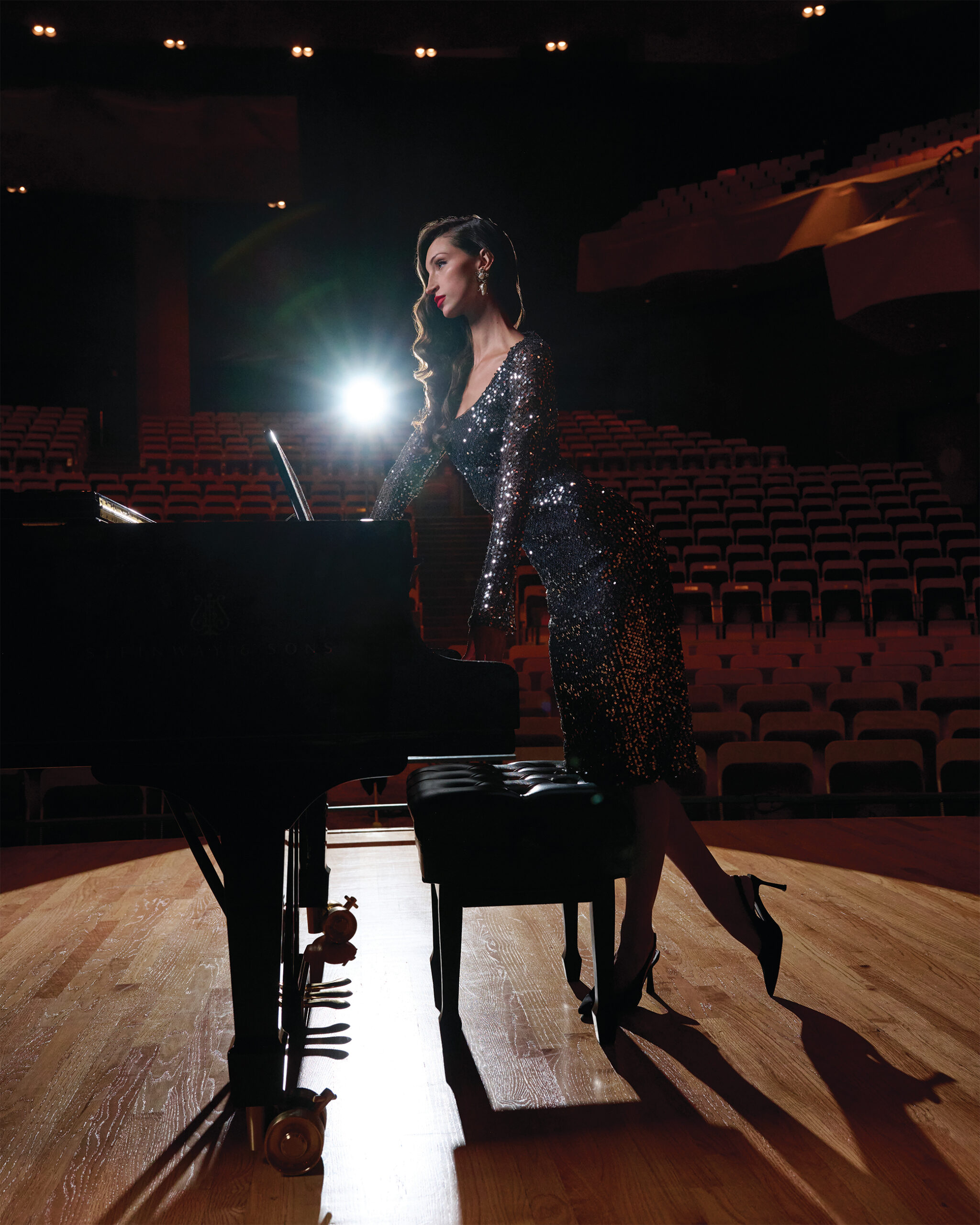 The team behind this production includes photographer Caroline Miller, stylist Hailee Lucchesi, and executive editor Lacy Morris, with creative director Tom Viscocchi overseeing the project. Model Emma Snow, represented by The Block Agency, brought the fashion to life. Hair was styled by Grace Martin, and makeup was done by Liz Wegrzyn. Photo assistant and Digitech support were provided by Dag Larson, with Wil Francis serving as gaffer. Wardrobe assistance came from Marisa Brail, and production assistance from Aspen Bentley. Special thanks to the Colorado Symphony and Nick Dobreff for the use of Boettcher Concert Hall and their invaluable support.